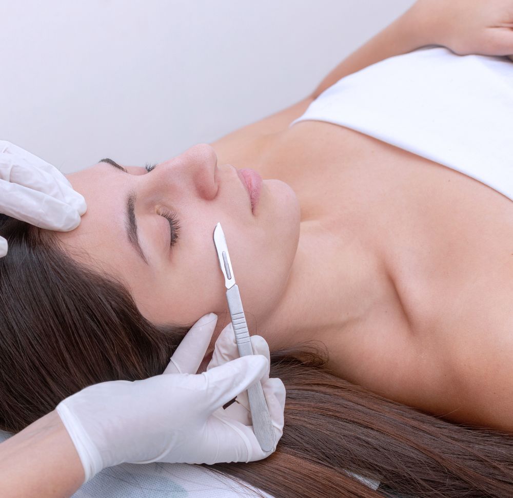 • Abtragen der Hautschüppchen und Härchen – Mit dem speziellen Skalpell werden feine Härchen (Vellushaar) und abgestorbene Hautzellen sanft entfernt.